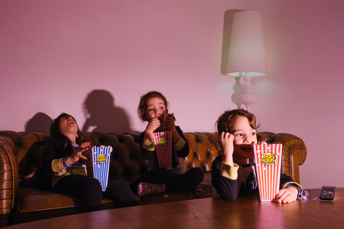 Transforma a sala de estar num verdadeiro cinema! Escolham um tema para a noite, como "super-heróis", "animais" ou "clássicos da Disney", preparem pipocas e aconcheguem-se no sofá para uma maratona de filmes. Podem até fazer bilhetes de cinema e criar um ambiente mais autêntico. Uma maneira perfeita de relaxar e divertirem-se em família.