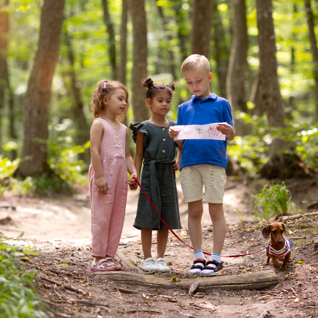 Podes, por exemplo, esconder pequenos brinquedos ou guloseimas no jardim e criar um mapa do tesouro com pistas. Por exemplo, uma pista pode ser "Procura debaixo da árvore grande" ou "Segue o caminho de pedras até à cerca".