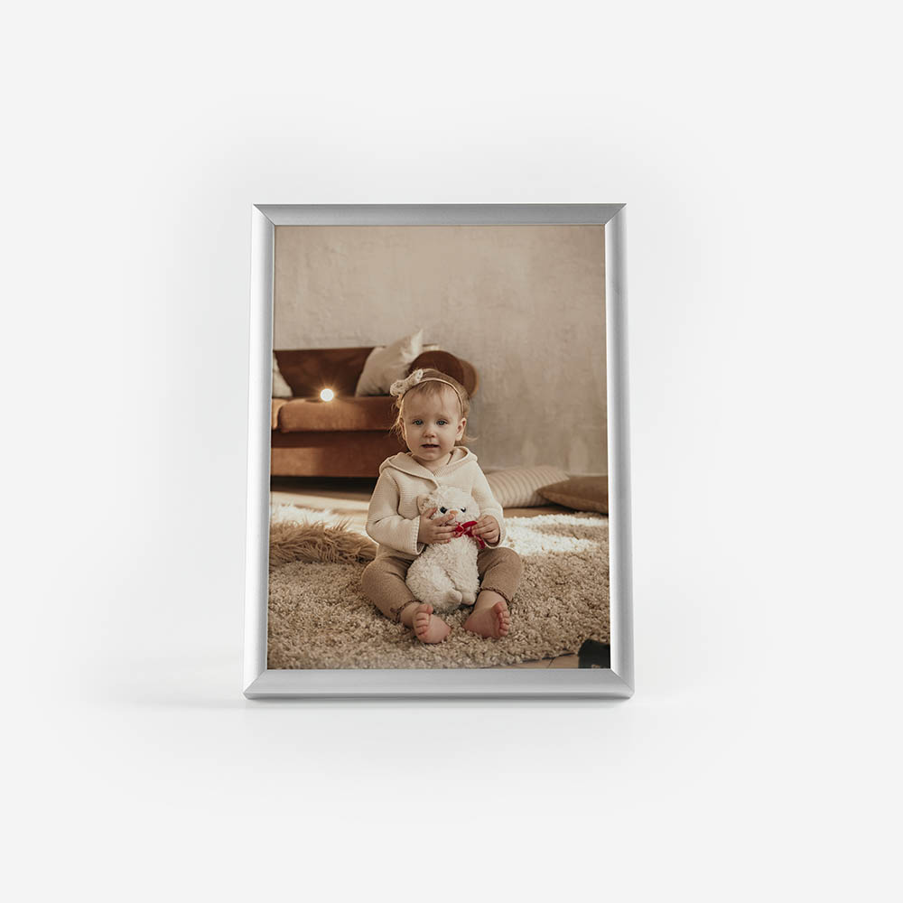 Moldura de alta qualidade, composta por uma estrutura em Alumínio com proteção em vidro, garantindo durabilidade e um acabamento perfeito para destacar as tuas fotos.